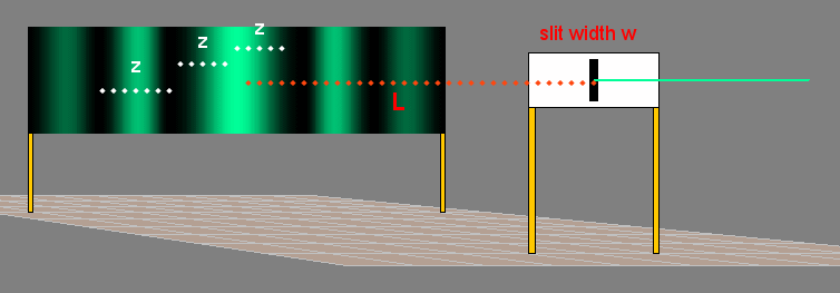 λ = zw/(m(L2 + z2)1/2), where z is the distance from the center of the interference pattern to the mth dark line in the pattern. If L >> z then (L2 + z2)1/2 ~ L and we can write λ = zw/(mL). |