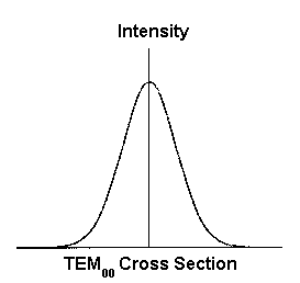 The lowest order mode, TEM00 has a cylindrical Gaussian irradiance distribution.
