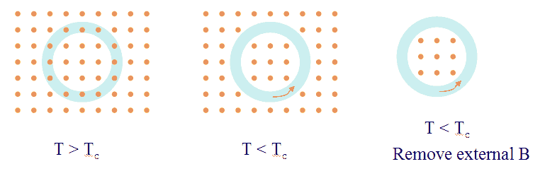 The Meissner effect is another striking property of superconductors. No magnetic field can penetrate a superconductor and a magnetic field already present is expelled when a metal is cooled below Tc. If you try to increase a magnetic field inside a superconductor, you will induce an electric field within the material according to Faraday's law. Lentz’s rule states that a current will flow to oppose the change that produced it. Because all the Cooper pairs act together, even the tiniest change in magnetic flux can generate a current which flows without resistance and and produces its own magnetic field, which cancels entirely the inducing field within the superconductor.