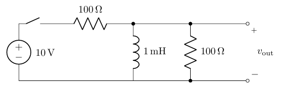 In the below circuit, the switch has been closed for a long time before t = 0. The switch then opens at t = 0, and then closes at t = 100 μs. Find and plot vout(t).