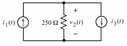 (a) The circuit shown below is at steady state. The input currents are i1(t) = 10 cos(25 t) mA and i3(t) = 10 cos(25t + 135o) mA. Determine the voltage v2(t).