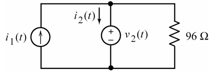 (b) The circuit shown below is at steady state. The inputs to this circuit are the current source current i1(t) = 0.12 cos(100 t + 45o) A and the voltage source v2(t) = 24 cos(100 t - 60o) V. Determine the current i2(t).